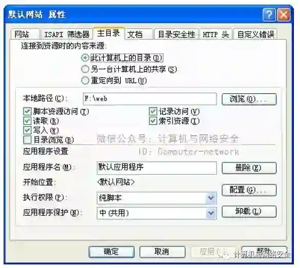 步骤2:右击“默认网站”图标,在快捷菜单中选择“属性”选项,即可打开“默认网站属性”对话框,如图6所示。