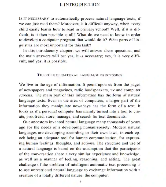 计算机能有效地处理人类语言吗?如果这很难,为什么?如果这是可能的,怎么做?这本书向读者介绍计算语言学和自动自然语言处理的迷人科学,它结合了语言学和人工智能。这本书的主要部分致力于解释语言处理器的内部工作,语言处理器是一个软件模块,负责将自然语言输入翻译成传统人工智能应用程序直接可用的表示,反之亦然,负责将它们的答案翻译成人类语言。这本书的整体重点是精心阐述的,尽管——由于许多历史原因——在文献中被称为意义文本理论的计算语言学模型中迄今鲜为人知。为了便于比较,还详细考虑了其他模型和形式。这本书主要面向对西班牙语自然语言处理技术的应用感兴趣的研究人员和学生。特别地,书中给出的大多数例子都涉及西班牙语材料——这是本书区别于其他自然语言处理书籍的一个特点。然而,我们的主要阐述是足够普遍的,适用于广泛的语言。具体来说,考虑到这本书的许多读者将以西班牙语为母语。为他们提供了一些关于英语术语的评论,以及一本关于书中使用的技术术语的英-西班牙语简短词典。不过,阅读这本英文书会帮助说西班牙语的读者熟悉有关该主题的科学文献中使用的风格和术语。