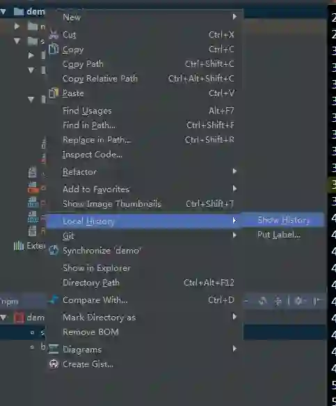 ps:webstorm自身的local history可以看到编译日志(项目运行后存放在webstorm生成的“.idea文件夹”)。右击项目名,就能看到local history选项