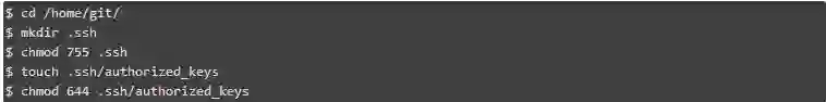 收集所有需要登录的用户的公钥,公钥位于id_rsa.pub文件中,把我们的公钥导入到/home/git/.ssh/authorized_keys文件里,一行一个。如果没有该文件创建它: