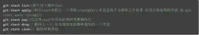 git stash将会把当前目录和index中的所有改动(但不包括未track的文件)压入一个栈,然后留给你一个clean的工作状态,即处于上一次最新提交处