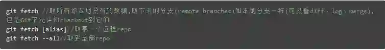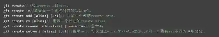 因为不需要每次都用完整的url,所以Git为每一个remote repo的url都建立一个别名,然后用git remote来管理这个list,如果你clone一个project,Git会自动将原来的url添加进来,别名就叫做:origin