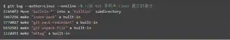 如果只想查找指定用户的提交日志可以使用命令:git log --author ,eg.: