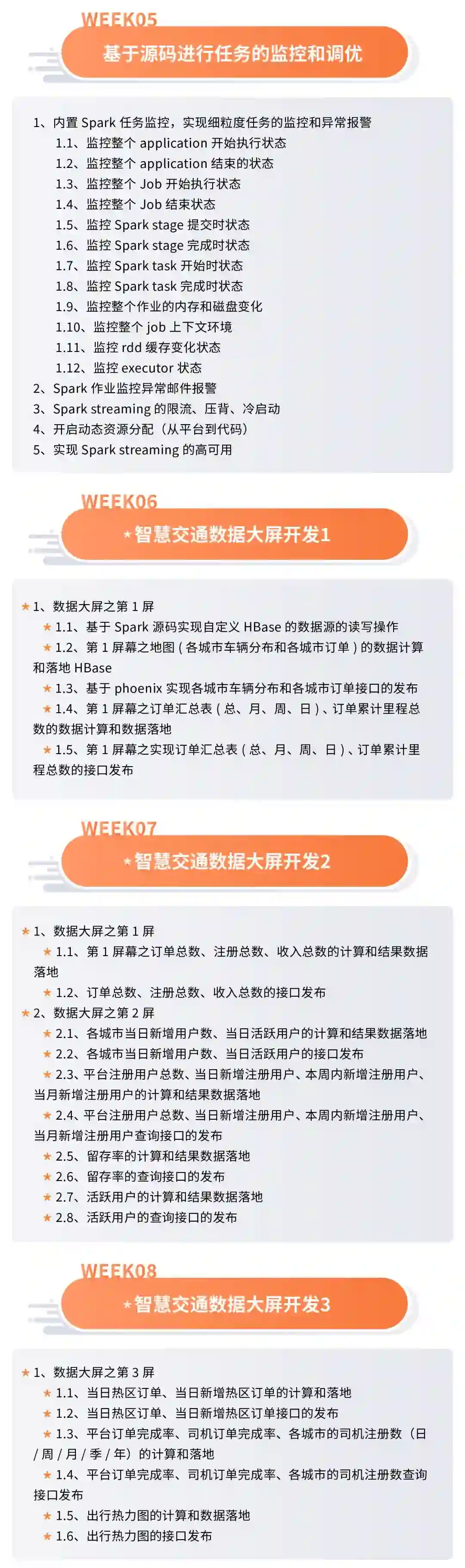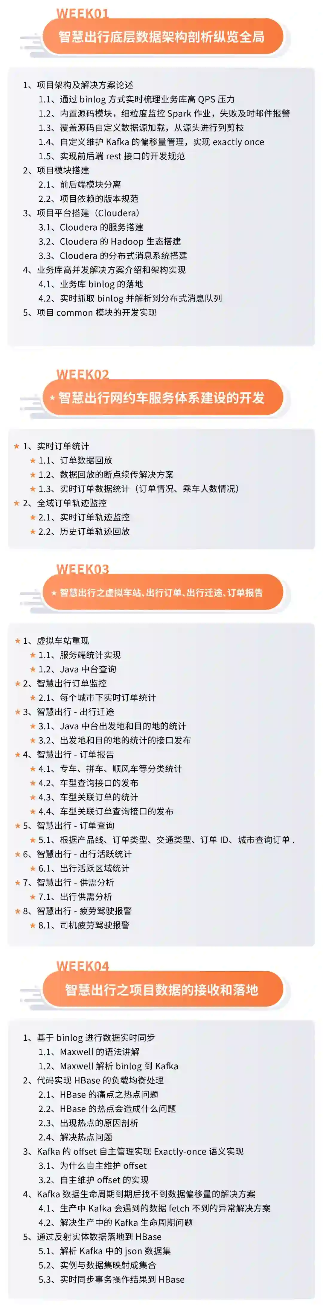ps:课程将严格遵守滴滴出行的数据安全标准,本培养计划中订单、车辆分布和收入总数等数据均采用模拟数据集实现,此类功能点在大纲中用*标注。