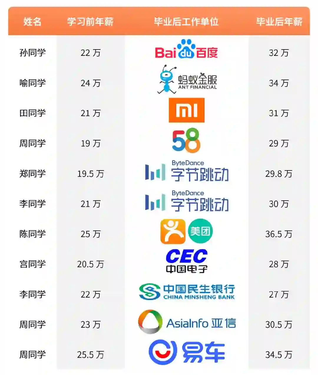 Boss直聘、拉勾网、智联招聘等多家就业招聘企业同后厂理工学院达成合作,为毕业生提供优先推荐服务,绝不让薪资就业成为难住学员的问题。