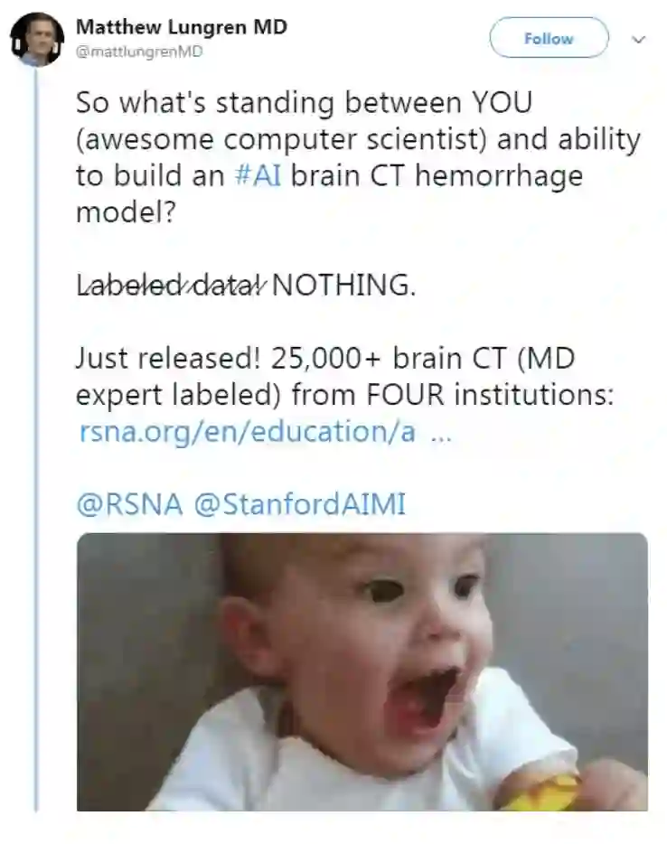 酷。完全同意。缺乏大型、标记良好的数据集是构建有用的临床AI的最大障碍,因此该数据集应该有所帮助。