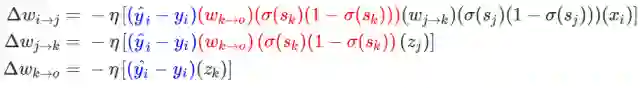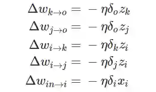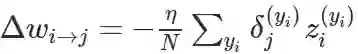 在这一个神经网络中,准确的权重更新模式是以下方程式:
