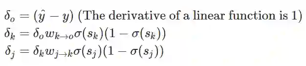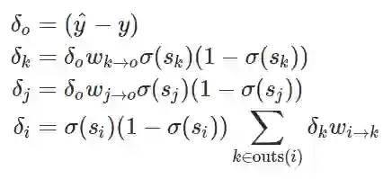 我们能使用 δ_i 的定义导出整个神经网络的所有误差信号: