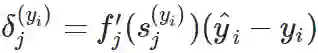 2. 对于所有的神经元 j 和每一个训练样本 y_i 计算误差信号,如果 j 是输出神经元,那么有: