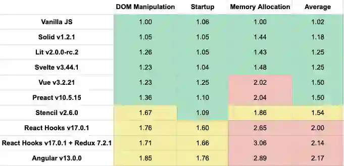 即使一些基准测试基于同一个应用程序对不同的框架进行了比较,也很难获得真实的结果,因为这种基准测试受限于被测试的应用程序(比如待办事项应用程序)。