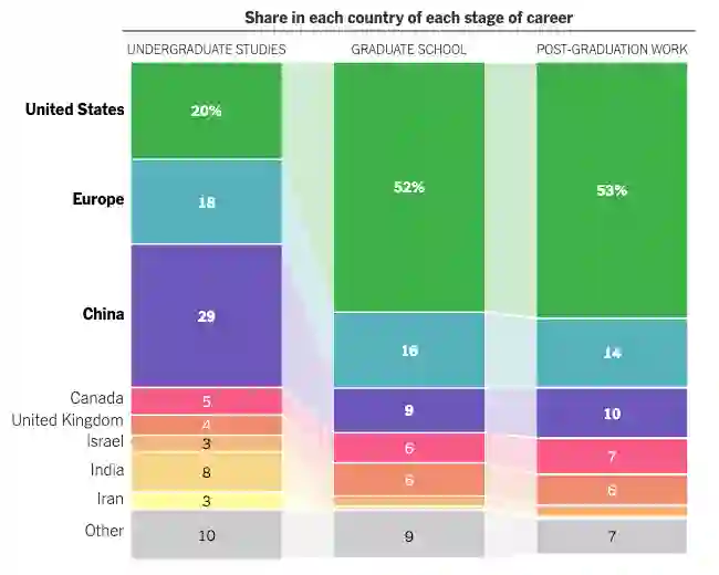 中国,已经成为全球人工智能研究者的最大输出源国家。美国人工智能领域的顶尖研究者中,有近三分之一来自中国。在麦克罗波洛智库分析师马特 · 希恩看来,美国政府近期一系列面向国际研究者的「驱逐政策」,最终削弱的将是美国自身的国际竞争力。