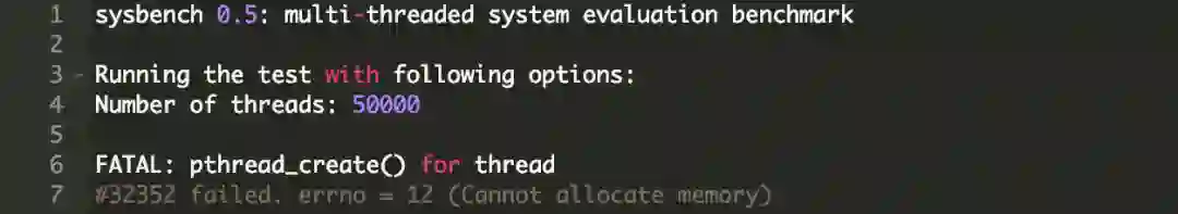 这是目前我们遇到的最大的挑战。首先,在尝试从sysbench中获取50,000个连接的时候遇到了以下错误: