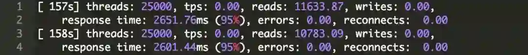 我使用2台服务器(每个服务器运行单独的sysbench)实现50,000个连接,每个sysbench上运行25,000个线程。