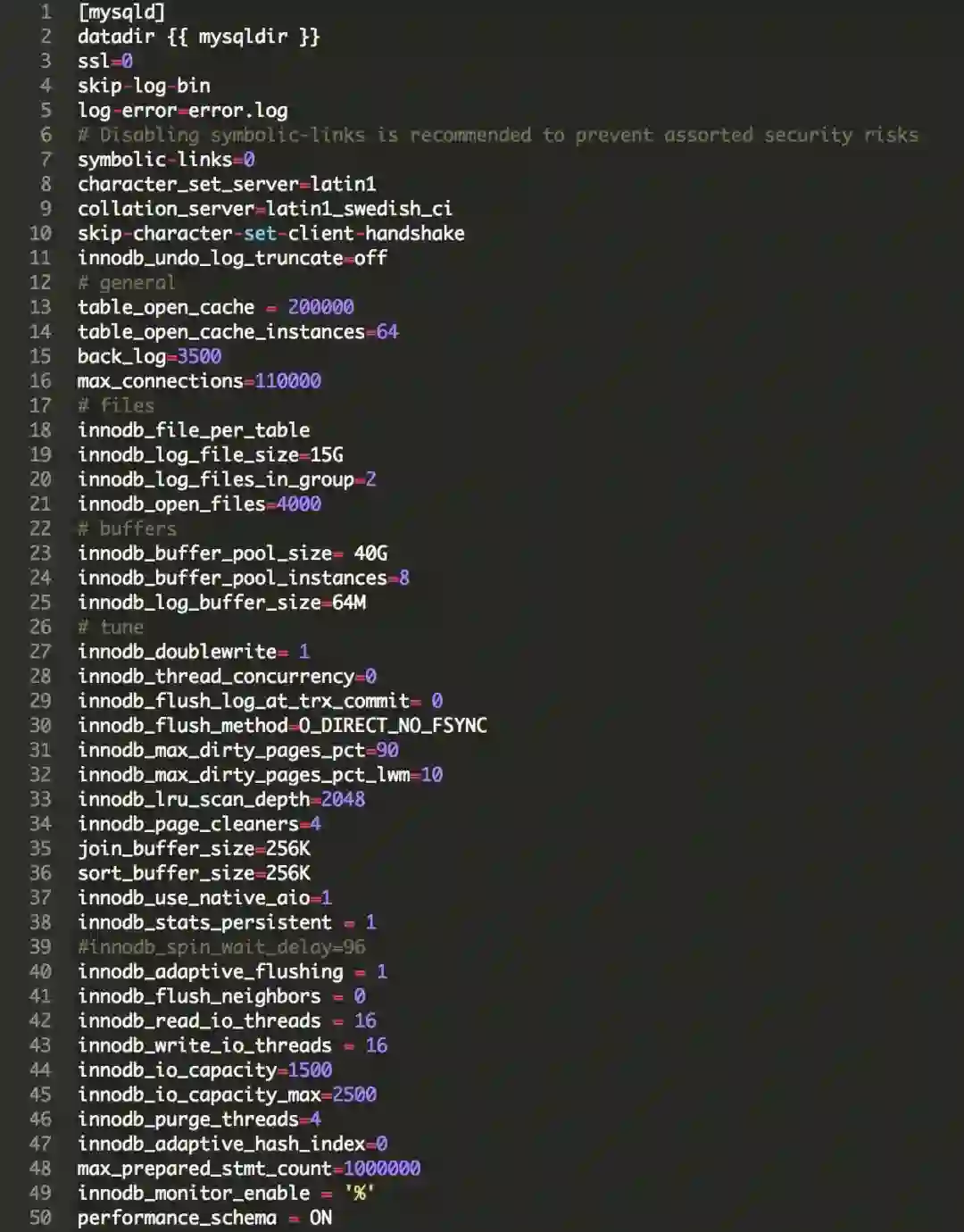 还有my.cnf文件中MySQL相关设置: