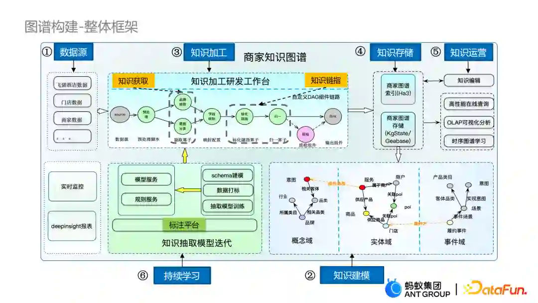 首先系统地介绍一下图谱构建的整体框架。这里共有六个组成部分。