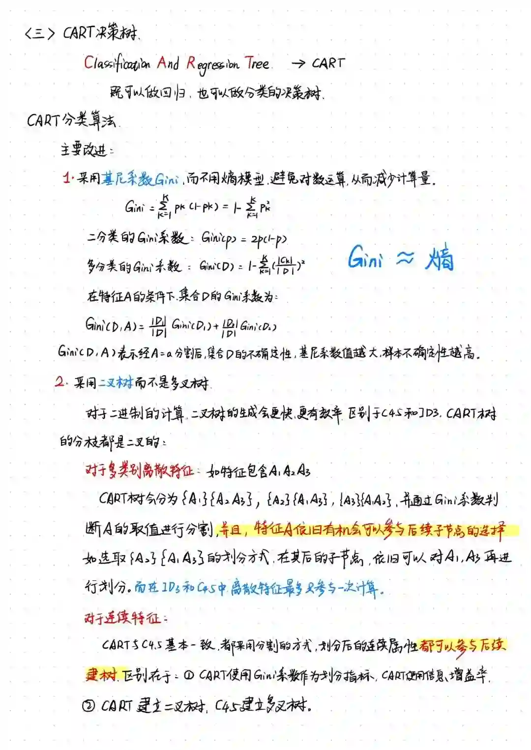 这份笔记会对ID3、C4.5、CART树进行介绍,希望对你有所帮助,如有疏漏,回复提出,感谢纠正~