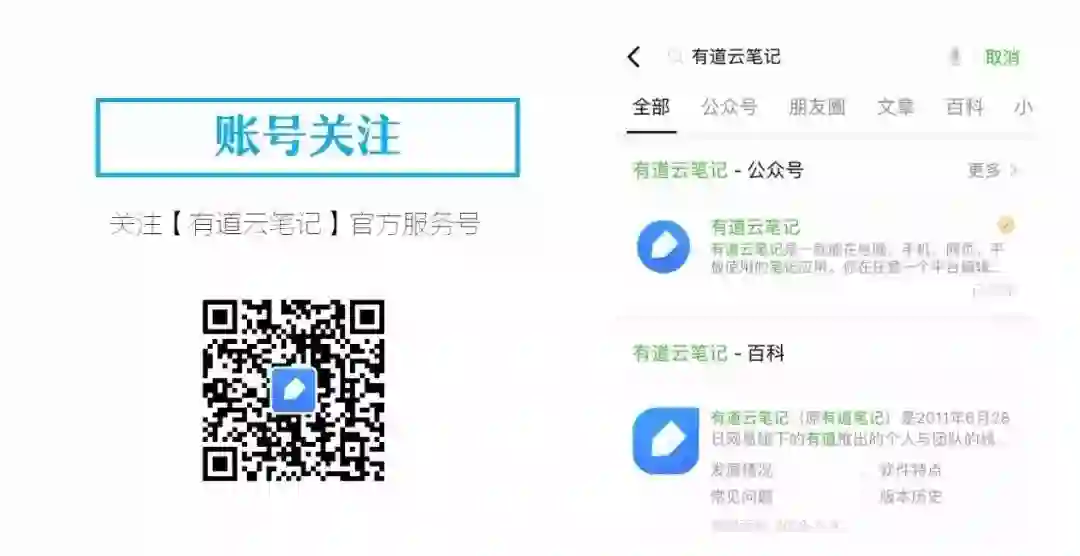 首先,关注【有道云笔记】官方微信