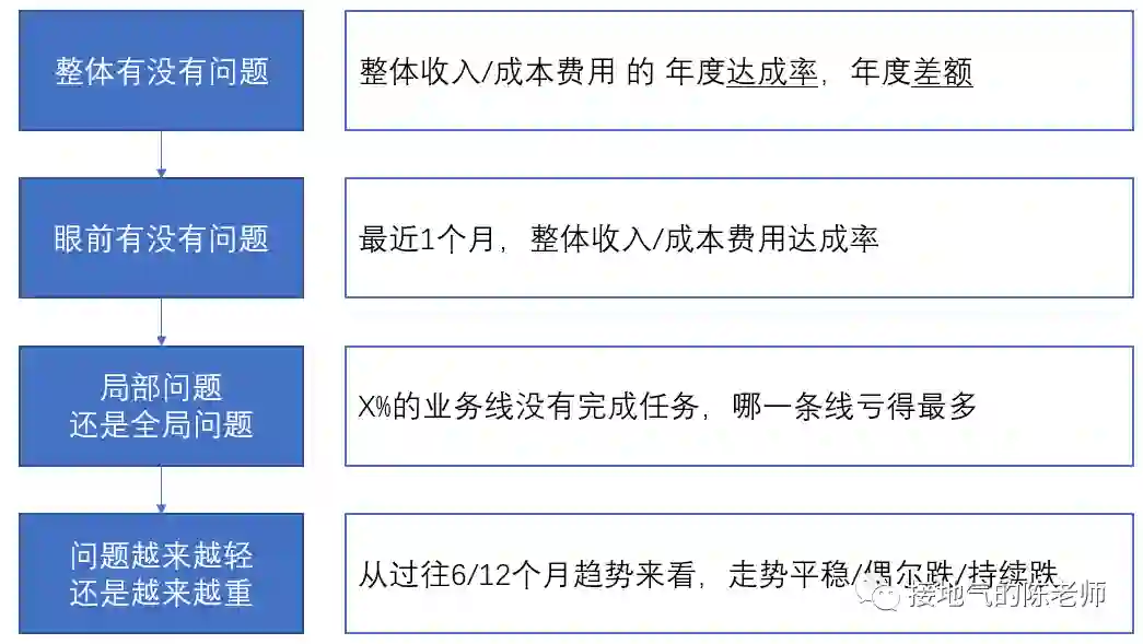 同时,在报进度的时候,往往收入/成本端是割裂的。业务的报告总会偏重收入增长,财务的报告偏重成本细节。这样很影响判断,最好的做法,是根据“不同成本对收入的作用”重新解构成本数据,关联起来看:每一部分成本发挥了什么作用(如下图)。
