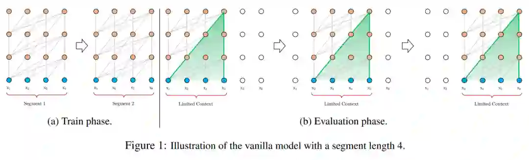 标准 transformer 的上下文大小是固定的,要想处理长的输入需要将输入分成块(段落),并分别处理每个块(段落)。