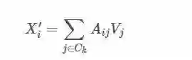 在给定的聚类簇 C_i 中,他们使用了一种标准的加权求和方法,计算了一组新的上下文嵌入,其中每个注意力值 A_i 是使用标准的点乘自注意力计算而来的。