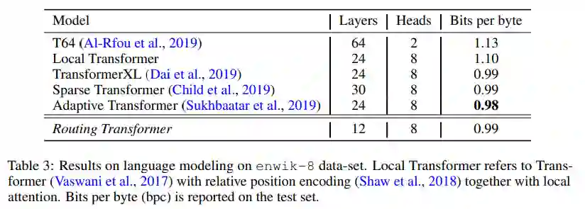 在 Enwiki-8 数据集上,路由Transformer 的性能也非常出色(尽管其性能稍微落后于自适应跨度 Transformer)。