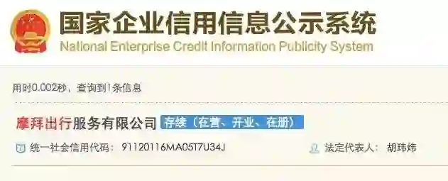 据北京商报记者查阅国家企业信用信息公示系统发现,摩拜在今年6月下旬成立了摩拜出行服务有限公司,注册资本5000万元,经营范围包括从事与出行相关的技术开发、技术推广、技术转让、技术咨询、技术服务等。