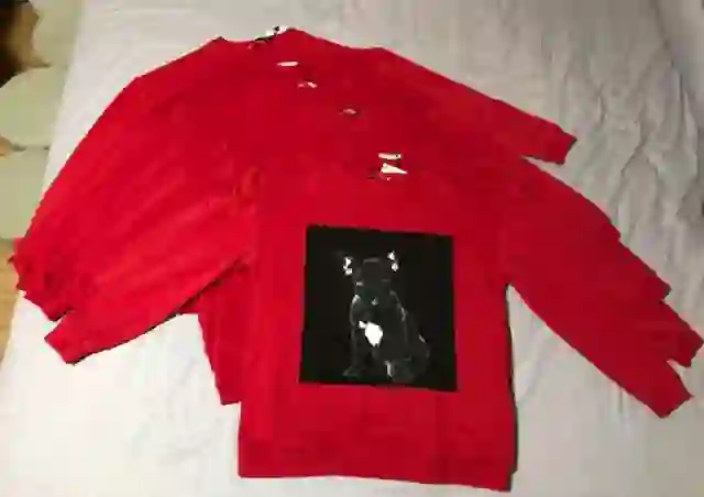 为了公平性,我买来了6件某品牌新年款,同一款卫衣,6件,分别制造了,日常生活中可能产生的脂溶性污渍:粉底、油污、酱油滴、沙拉酱、中性笔&荧光笔不慎画上的一两笔。