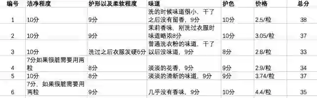所以综合评分,1号和2号除了效果出众以外,凭借着价格优势胜出。洁净程度可以说是非常干净了,护形护色方面也很出色,至于味道,见仁见智,我同时也有分发给热爱运动的同事们一些凝珠,大部分表示:更喜欢1号的,感觉在祛除汗味上有明显效果。