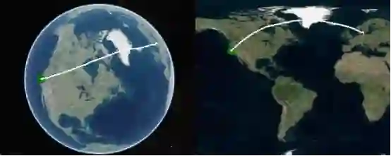 从这趟跨大西洋航班,我们可以看到 3D 可视化为何能大大降低数据的理解难度。不过雷达样本的连接线大多是直的,我们可以在 2D 地图上使用常见的 Web 墨卡托投影,用曲线表示飞机的起降轨迹。