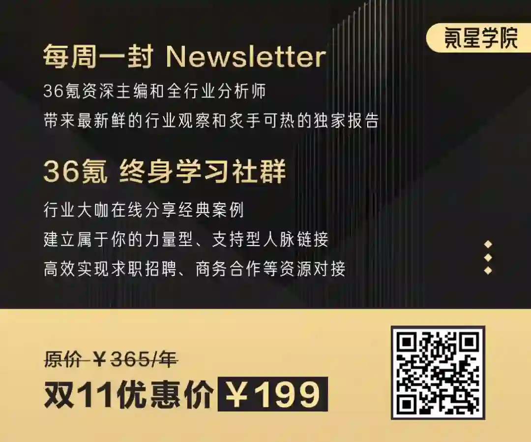 简单地说,就是:每周一封Newsletter + 36氪终身社群。