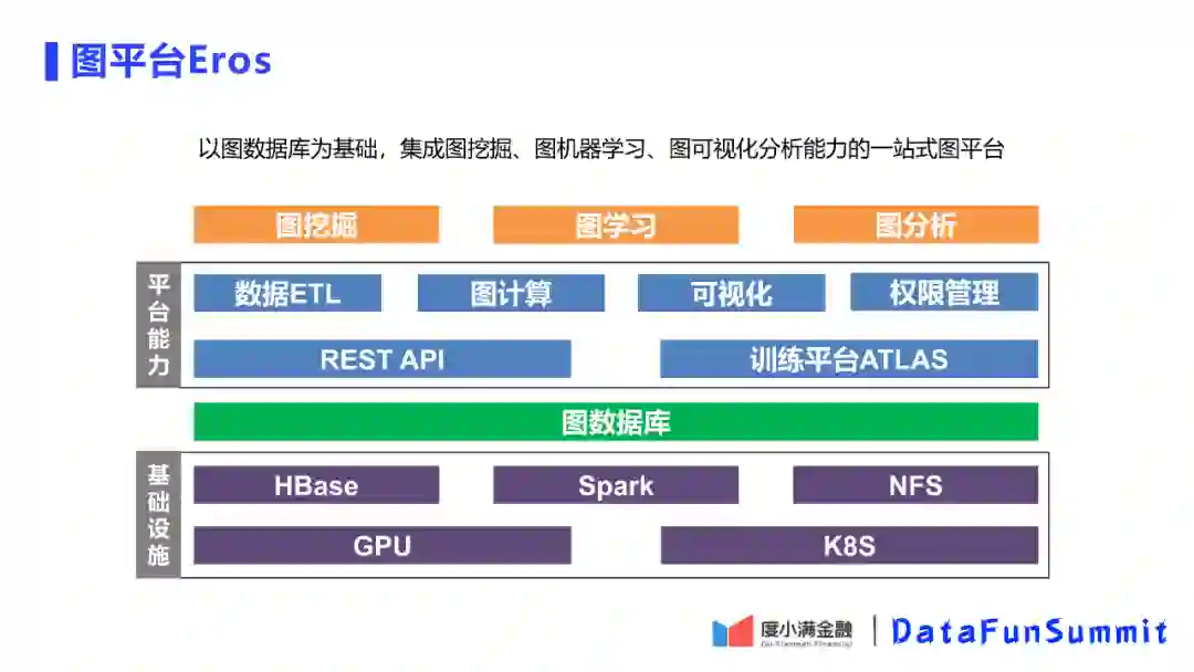 图学习和图分析总结起来都属于图计算的能力,我们围绕图数据库提供了图计算的框架和能力的支持。图适合做可视化展示的数据结构,用图平台的用户可能不精通图挖掘、图数据、图模型,比如某些用户用图数据来做自己的一些分析,可视化是提高分析效率的重要工具。