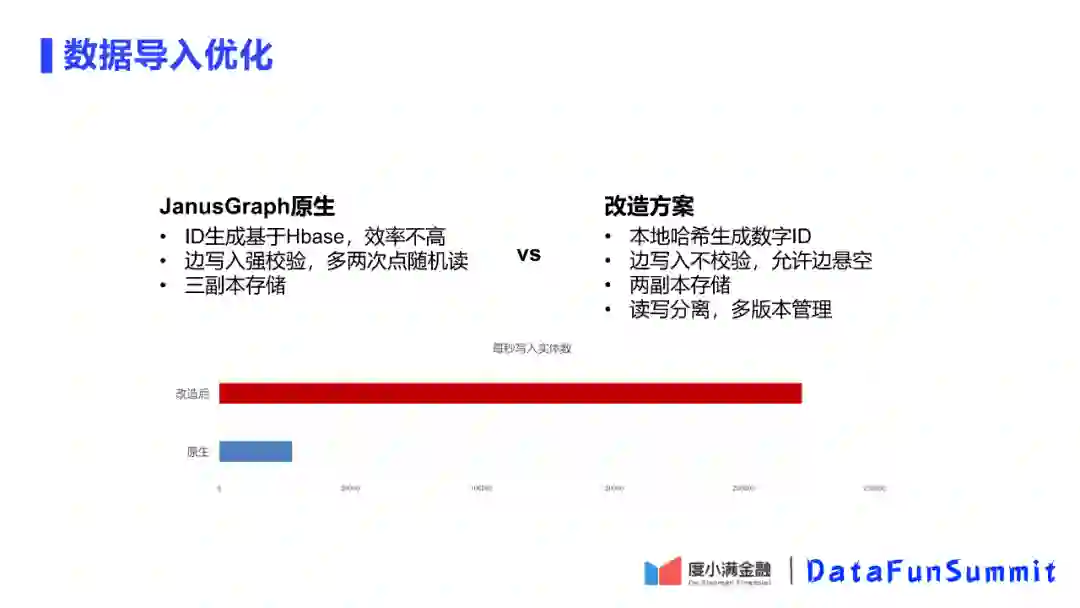 在做完查询优化后,发现JanusGraph的原生数据导入其实也是比较慢的。针对原生数据导入的缺陷,平台进行了三点优化: