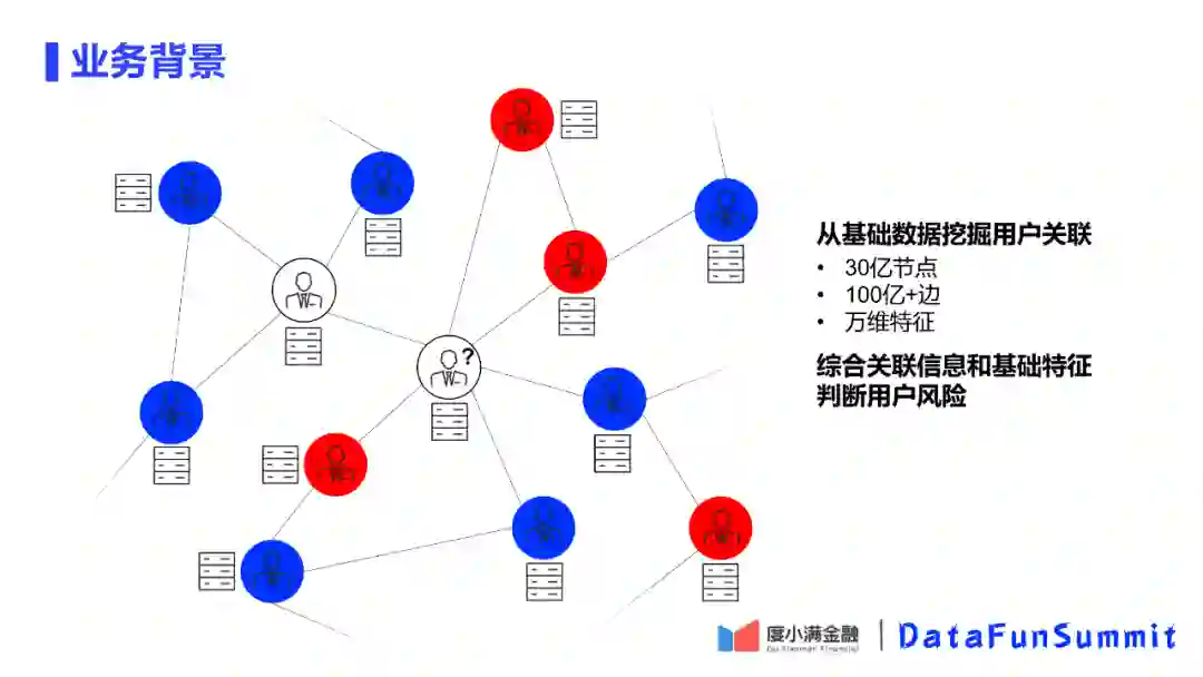 导读:金融风控场景数据间有天然的关联。关联信息可以加强模型风险区分能力。复杂数据场景及海量数据规模给关联信息的管理、建模和模型部署都带来了巨大的挑战。本文将介绍度小满内部构建的超大规模图平台的一些经验与思考,并重点讲解在实践中碰到的问题与解决方式。主要内容包括:① 图数据治理;② 图模型训练;③ 图在线部署;④ 总结思考。