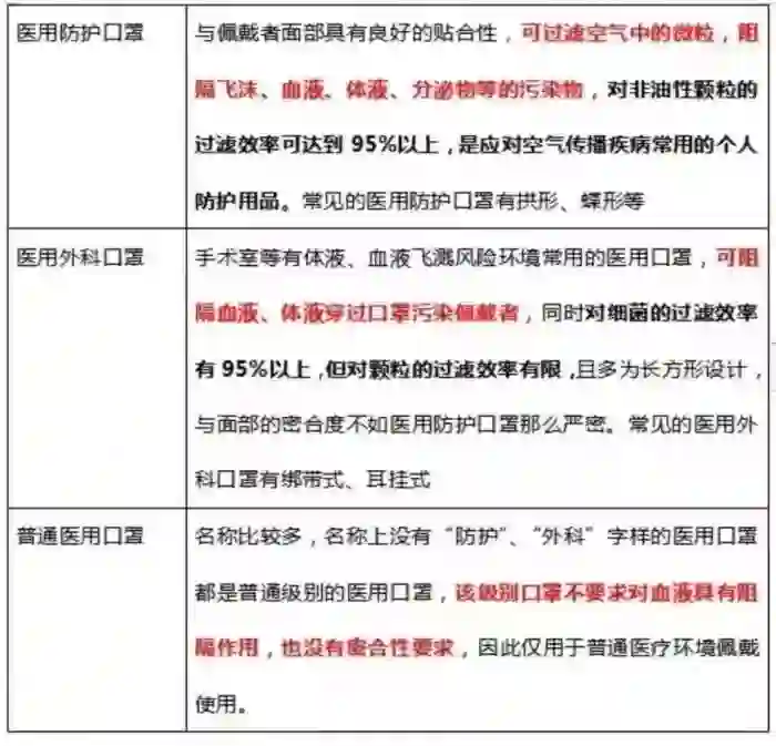 从上表你可以得到一个笼统的结论是,外科用N95口罩的防护范围大于一般N95口罩大于一次性医用口罩(包含普通和外科)。