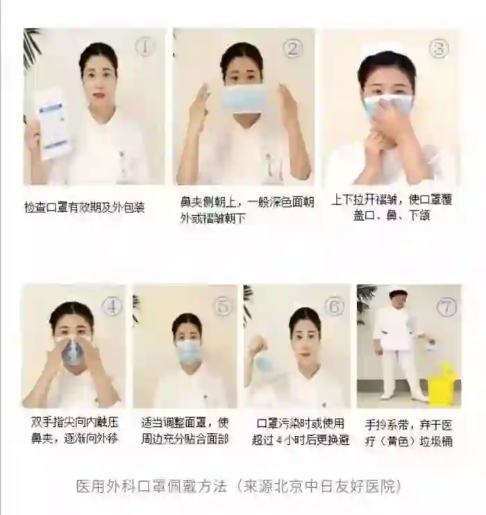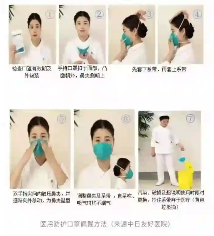 3.绝对不要用手去挤压口罩,包括N95口罩,都只能把病毒隔离在口罩表层,如果用手挤压口罩,使得病毒随飞沫湿透口罩,还是有机会感染病毒的。