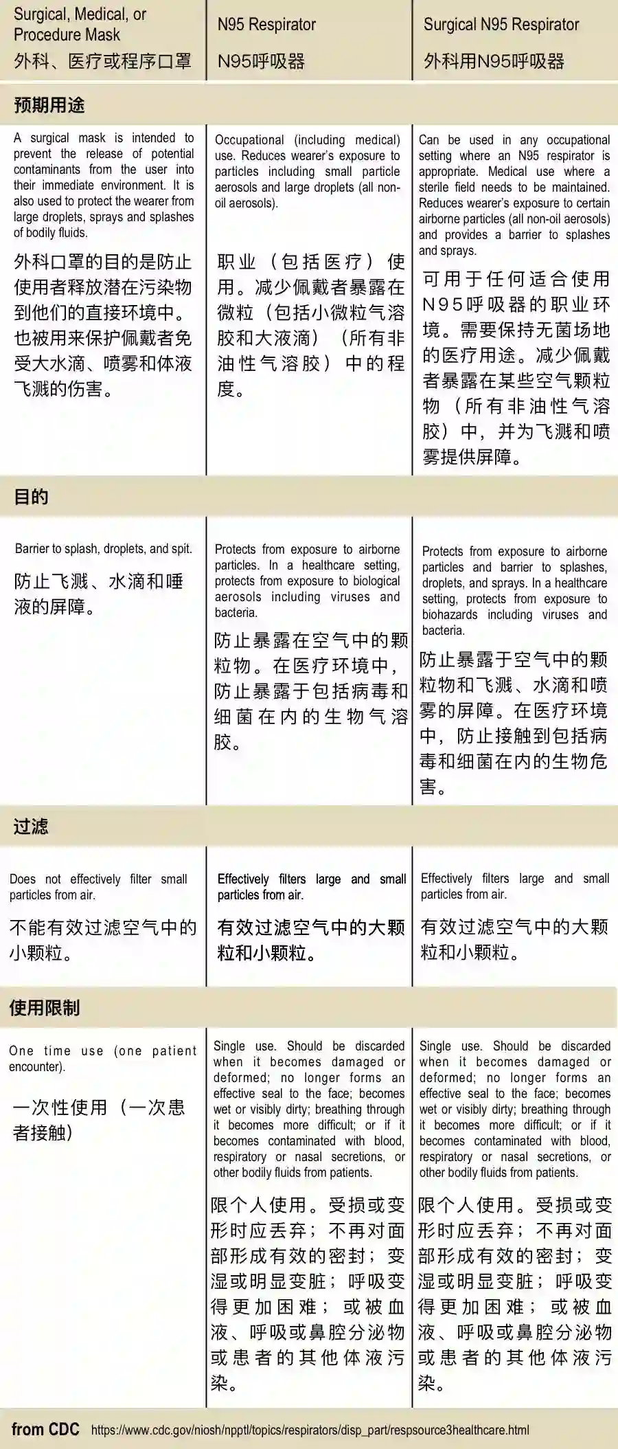 下表是CDC关于各种口罩的分类,以及他们对应的预期用途(资料来源:童办编辑部):