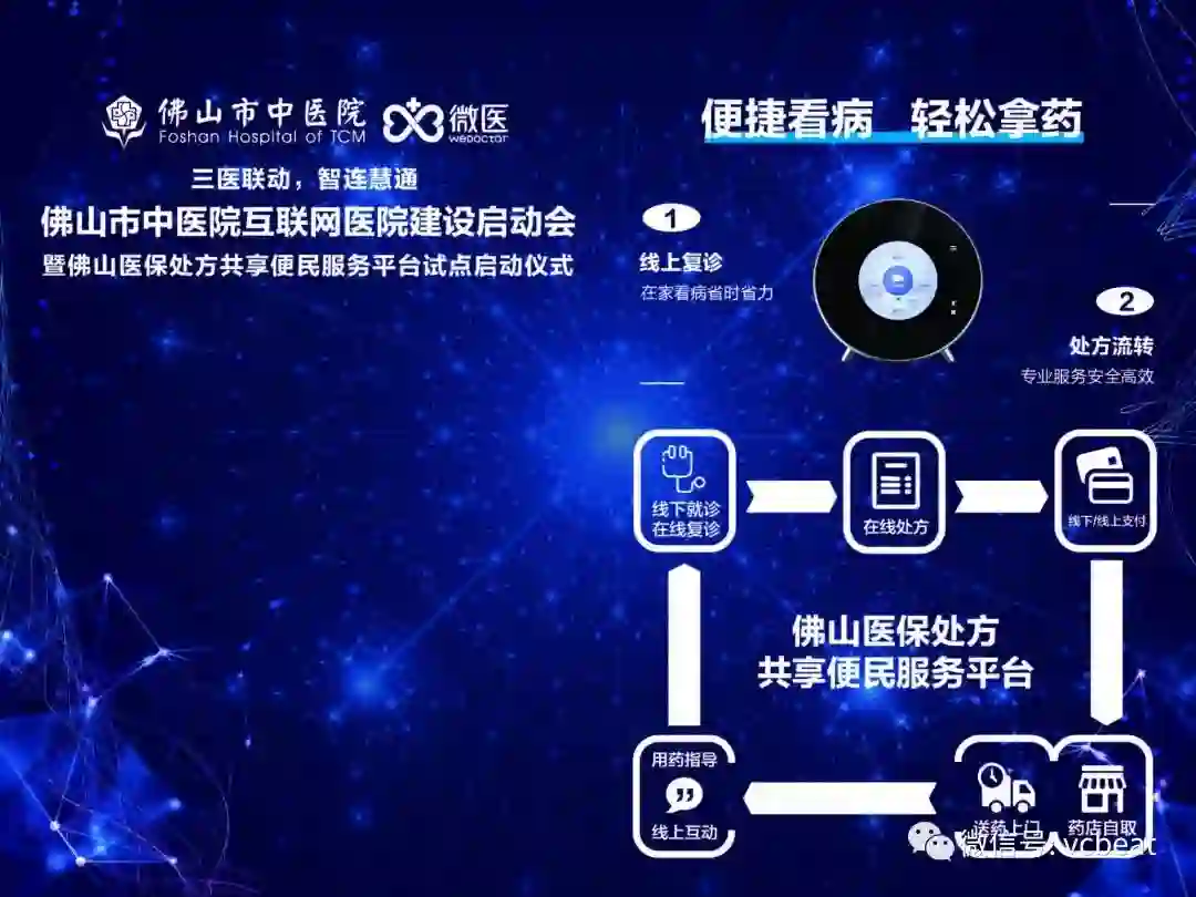 同日,佛山医保处方共享便民服务平台率先在该互联网医院试点,未来佛山市民通过手机就能完成在线复诊、医保结算、快递送药上门或附近药店快速取药。