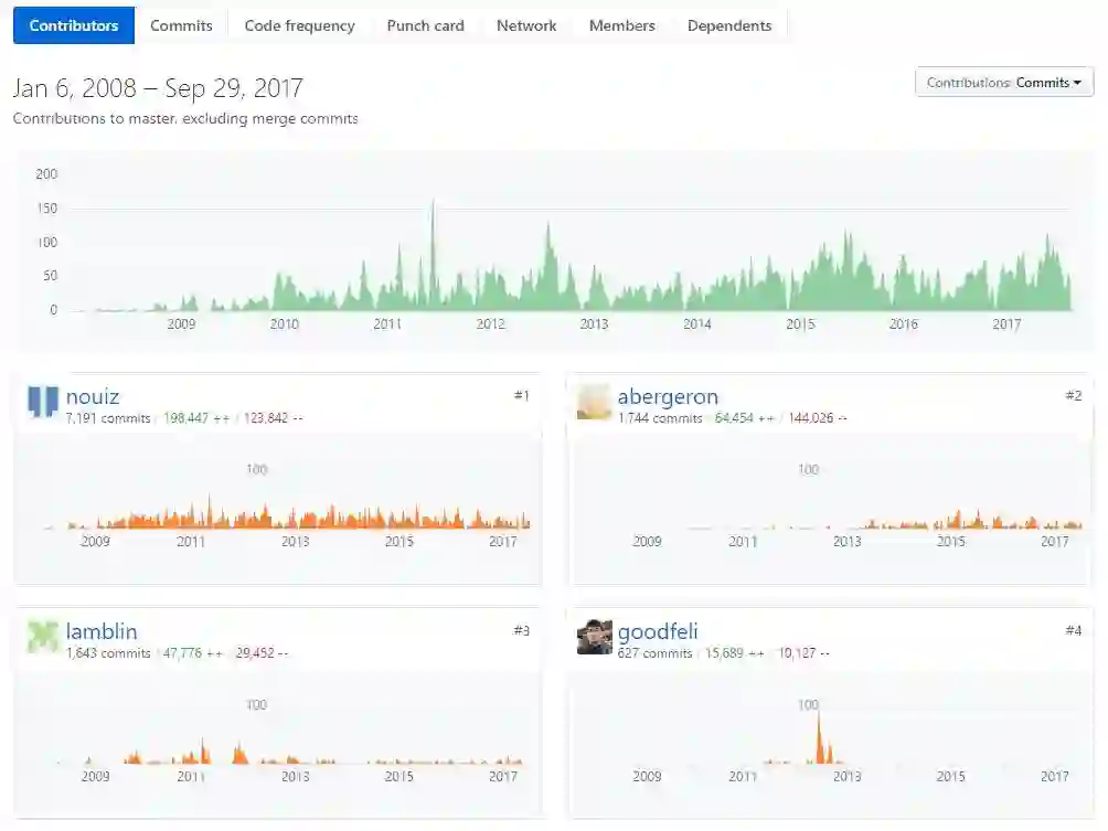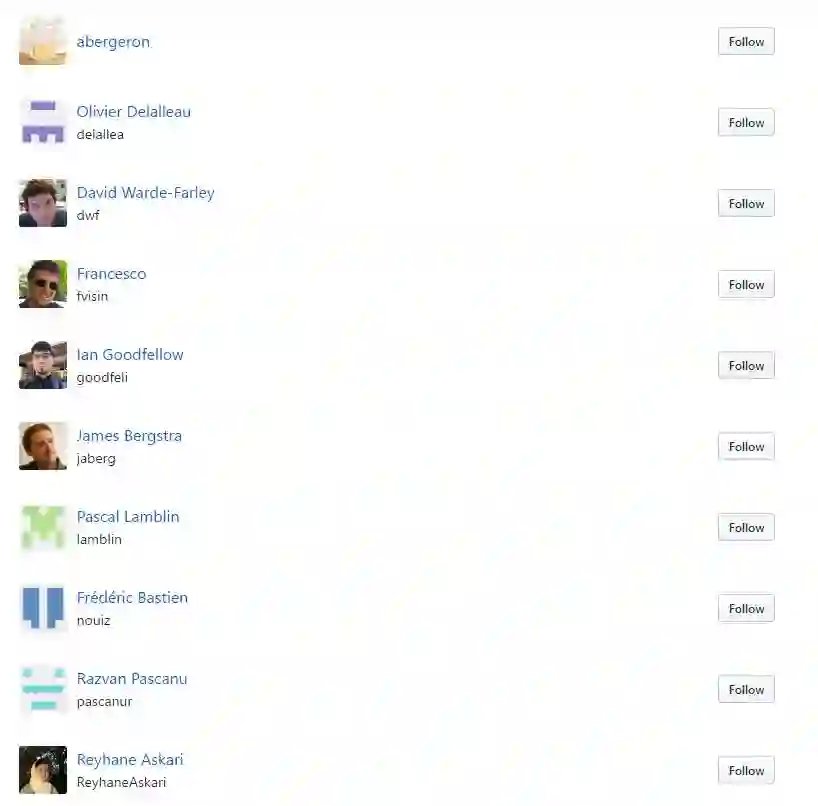 以下为 Theano GitHub 项目的开发者与维护者,可以看到谷歌研究科学家 Ian Goodfellow 也是其中之一: