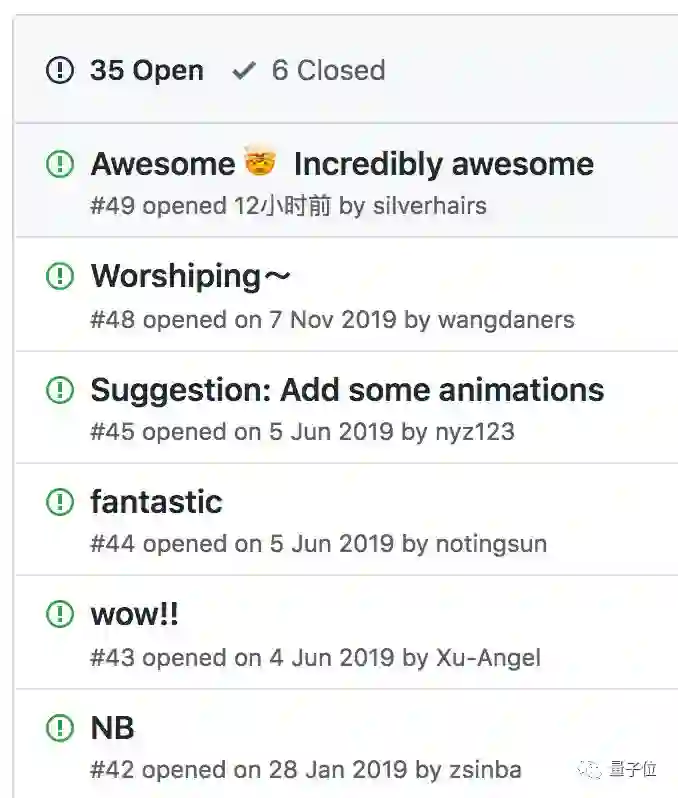 并且Issues里都是诸多用户的膜拜:厉害!崇拜!太棒了!