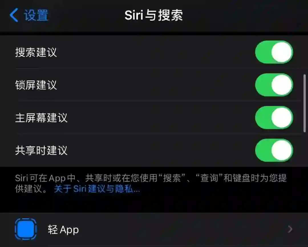 「App Clip」 被赋予全新汉化名称「轻 App」,可以在「设置-Siri与搜索」 中找到。