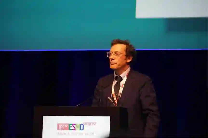 ESMO 2017大会第二天的主席研讨会上,III期临床试验PACIFIC结果正式发布,在无法手术切除的局部晚期(III期)非小细胞肺癌患者,在接受标准含铂的同步放化疗 (CRT) 后,未发生疾病进展患者,与目前标准治疗相比,Imfinzi (durvalumab) 维持治疗对比安慰剂,可以显著延长 PFS 达11个月,Durvalumab是第一个对于III期NSCLC患者证明有PFS显著获益的免疫检查点抑制剂。大会现场,PACIFIC试验Luis Paz-Ares教授汇报了研究结果,Johan Vansteenkiste教授进行了现场点评。