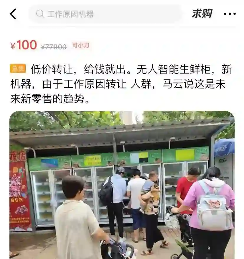 经过4个月的探索,肖刚最终将此前投资的5台无人果蔬柜放到了二手交易平台——“闲鱼”上出售。