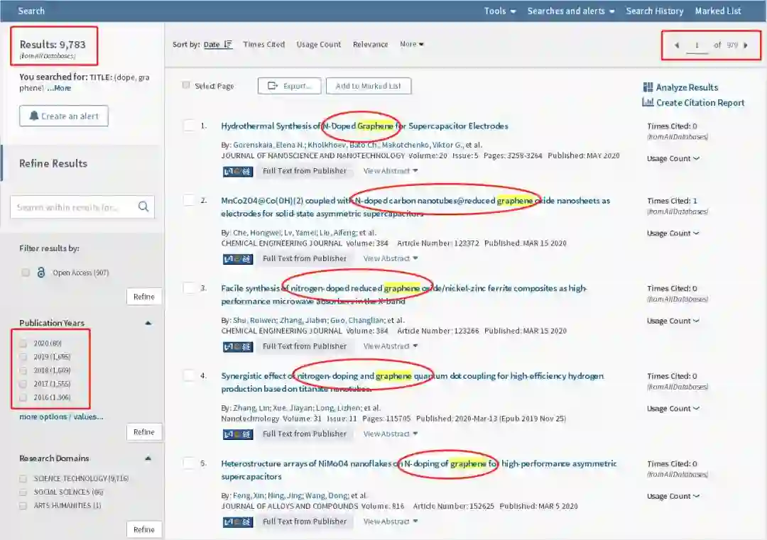 为了看一下这个石墨烯掺杂到底有多火,本人特地在Web of Science上进行了查询,以dope,graphene为关键词查询标题带有这两个词的就有9783个,2019年发表1695篇,18年1669篇,17年1555篇,16年1306篇,数目随着时间还是增长的,相信这个趋势还会保持!