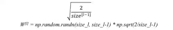 2.随机初始化权重 在使用(深层)网络时,按照标准正态分布(Python中的np.random.randn(size_l,size_l-1))随机初始化权重可能会导致2个问题: 梯度消失或梯度爆炸。