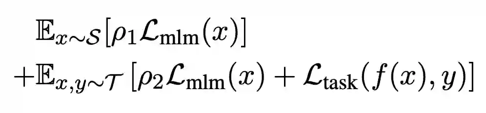 为了从大规模通用语料中抽取关键数据,TLM 首先以任务数据作为查询,对通用语料库进行相似数据的召回。这里作者选用基于稀疏特征的 BM25 算法[2] 作为召回算法。之后,TLM 基于任务数据和召回数据,同时优化任务目标和语言建模目标 (如下图公式所示),从零开始进行联合训练。