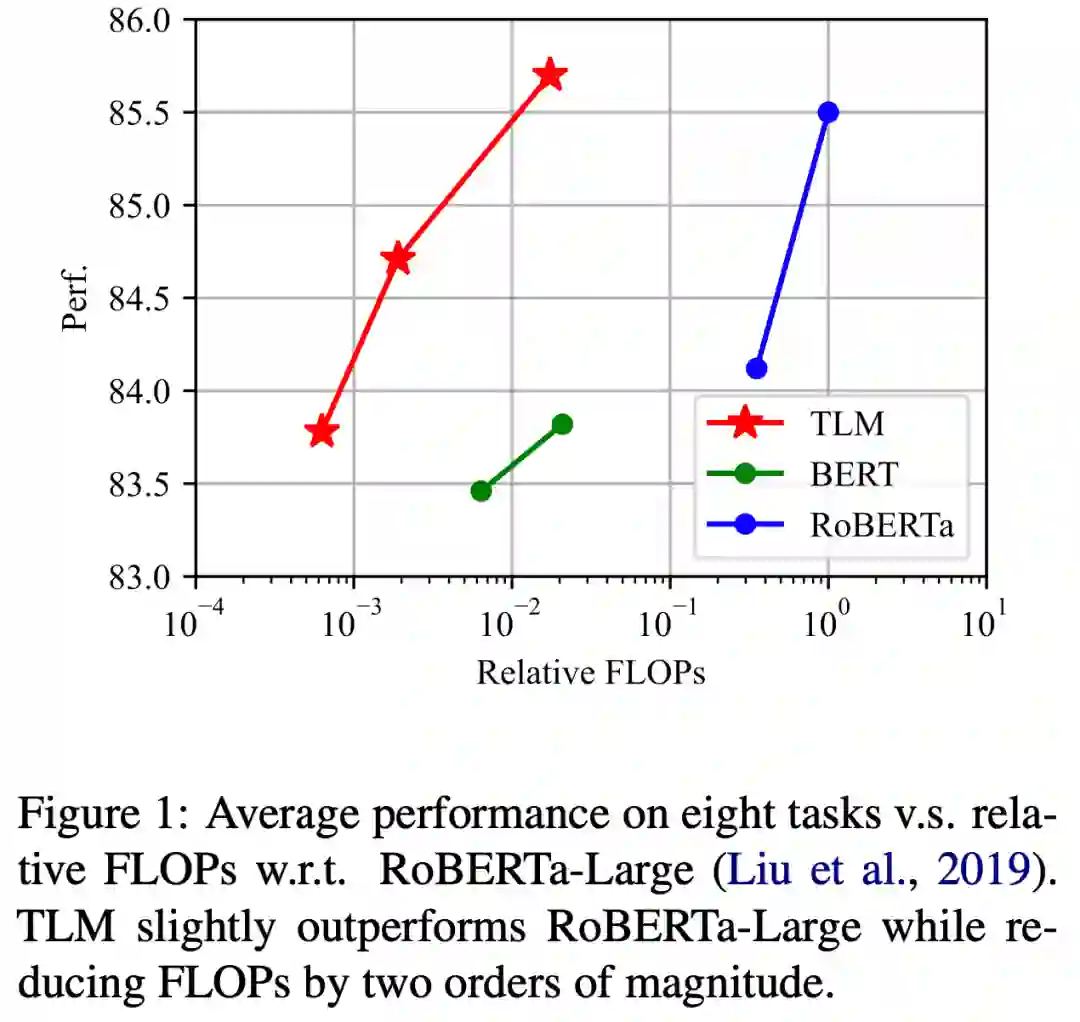 TLM 仅需要约 1% 的训练时间与 1% 的语料