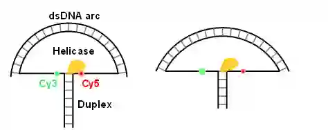 5、2017年发展了高精度荧光共振能量转移技术。以往的荧光共振能量转移技术在对于解旋酶研究上只能达到2-3bp的分辨精度,而2017年发展的纳米张力器技术,通过对单链核苷酸链施加一小段双链DNA的刚性弹力作用,使得荧光共振能量转移技术在对解旋酶研究上提高到0.5个碱基对的精度,促进对解旋酶和聚合酶更统一、更基础的分子机制研究。