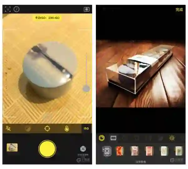 HYPELIGHT 其实可以算是第一类「全能型」应用,手动相机、滤镜效果、曲线调节、蒙版工具一应俱全。且大部分操作体验都非常出色,比如长按拍摄可以延迟快门,若此时加重力度还可以利用 3D Touch 特性更迅速地延迟快门。在添加滤镜或是调节颜色时,你可以通过上下滑动底栏中的滑杆调节,单手就能完成操作。