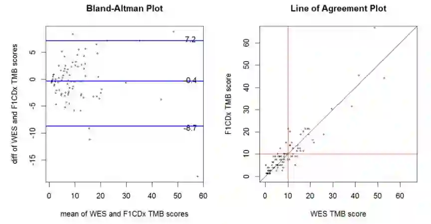 图2. F1CDx TMB评分与全外显子测序TMB评分的分析一致性
