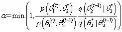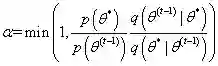 如果u≤α,接受该建议且设置θ(t)=θ∗;否则设置θ(t)=θ(t−1)